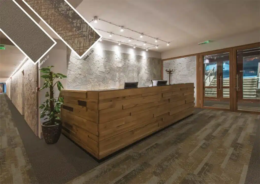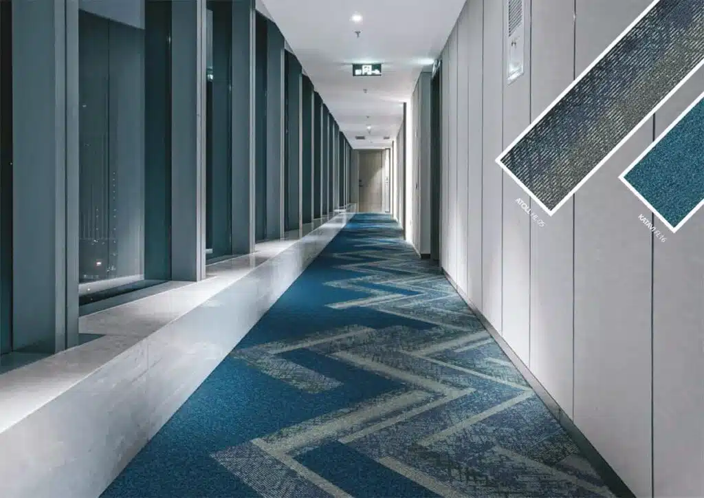 พรมแผ่นรุ่นนี้เหมาะกับพื้นที่ที่ต้องการสร้างมิติของการเปลี่ยนผ่าน เช่น โถงทางเดิน ห้องประชุม โรงแรม หรือพื้นที่พักผ่อน